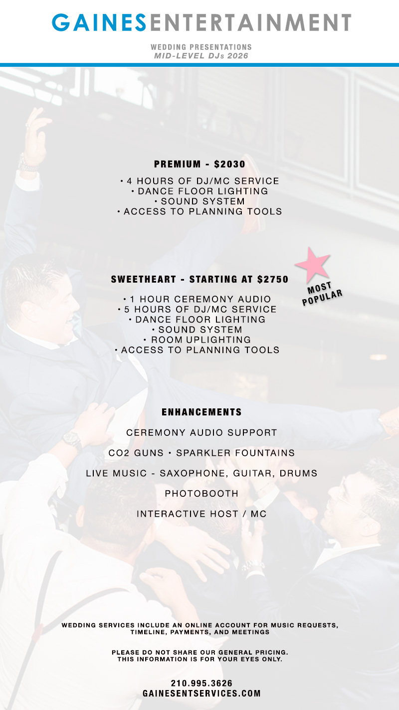 Our Wedding DJ pricing is based on experience, demand, and availability.